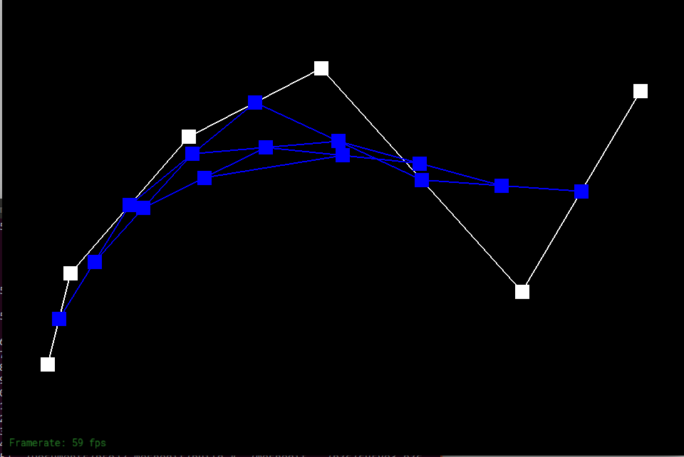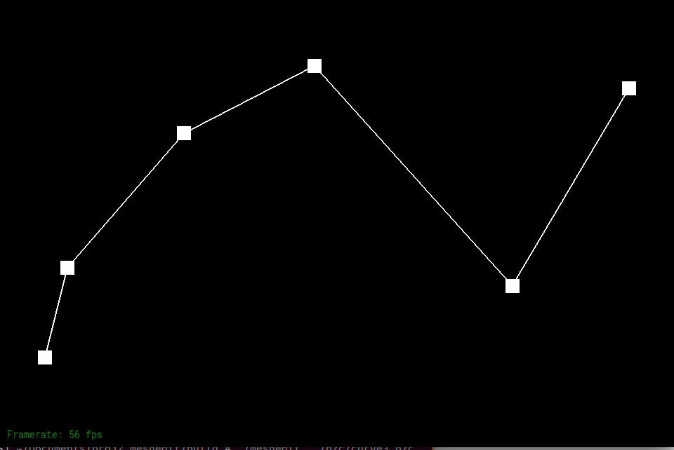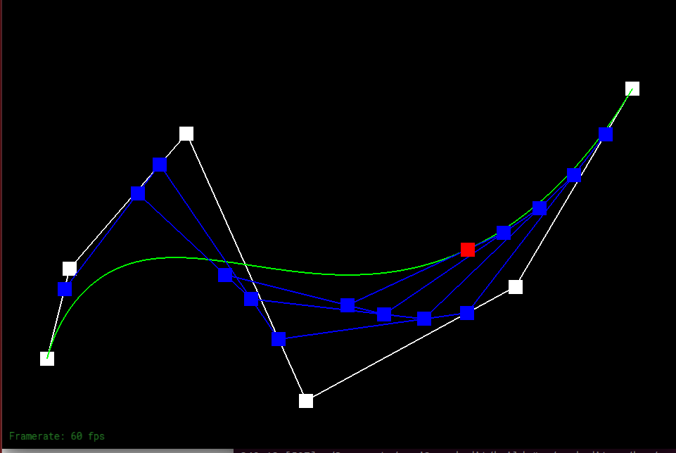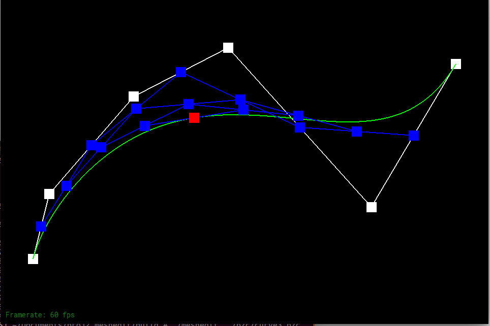 Bezier curves are a mathematical way of generating smooth curves between points. To implement this, we use what is known as "de Casteljau's algorithm." The algorithm works by continually interpolating between consecutive points until only one point remains. This is illustrated in the pictures below: at each step of the evaluation, a new control point is created that is interpolated from two consecutive points using a value t that is between 0 and 1. This process repeats for every consecutive pair until there is only one point left, which is the final point on the Bezier curve. To generate the entire curve, we run de Casteljau's for all t between 0 and 1.