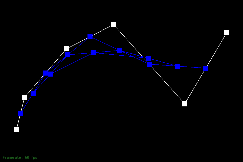 It appears that we've learned how to perform the smoothing operation in software such as Autodesk Maya, through the use of de Casteljau's to generate Bezier surfaces. This also explains the reasoning behind "beveling," leaving edges closer together in order to retain more of the original shape after smoothing, because there is less distance to interpolate between. I believe the graph editor also uses a Bezier curve to interpolate between animation keyframes, which is why an animation with keyframes too far spaced apart looks robotic and unnatural - the computer simply generates a smooth curve through interpolating between points.