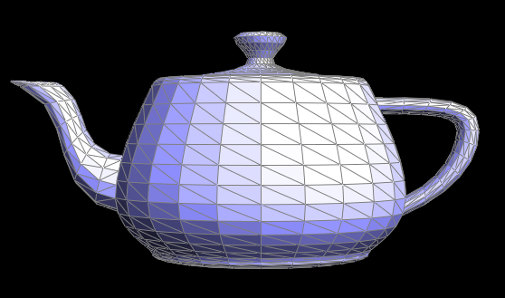 In this part of the project we implement area-weighted average normal vectors at each vertex. This process makes use of the halfedge, a data structure that allows us to encapsulate data about the mesh in what can be described as a linked-list variant. To retrieve the average normal vector, we make use of the halfedge to retrieve all neighboring vertices, take the sum of the cross products of all of the triangle edges, and finally normalize that sum.