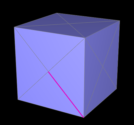 The half-edge flip is a mesh operation that is exactly as it sounds: flipping an edge. You can visualize it as a a rhombus with one diagonal traced in. After flipping the edge, the traced line now is in the position of the other diagonal. To perform this operation with the halfedge data structure, you need to perform a sequence of pointer reassignments, making sure to reassign the halfedges and their properties, such as source vertex, and also reassign the halfedges that faces, vertices, and edges point to so as to be consistent with the new geometry. What I found helpful in this part was drawing a diagram of the mesh before and after a flip operation. By labeling all halfedges, vertices, faces, and edges, it is much easier to visualize the new properties of each mesh object and correctly reassign what needs to be changed.