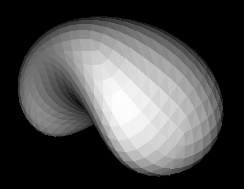 Loop subdivision consists of combining both halfedge splitting and flipping to "upsample" the mesh topology, that is, to improve the display or resolution of the mesh through an interpolation scheme. You can quite noticeably see the improvement in display quality of the bean mesh pictured below. While the mesh without up-sampling has rather noticeable polygon structure, the mesh after up-sampling twice appears far smoother, especially at a distance.