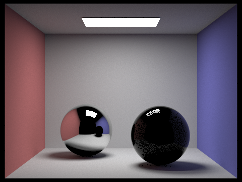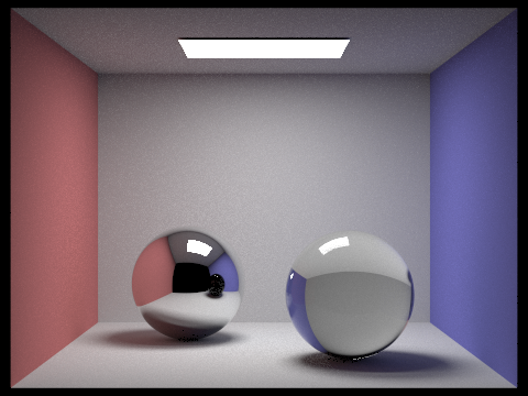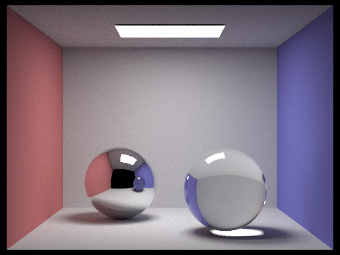 The two images below were rendered with 64 samples per pixel, 1 light ray, and a maximum of 5 light bounces.