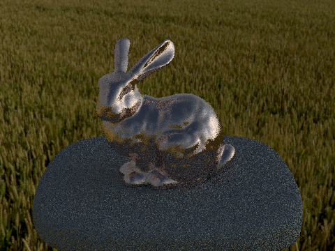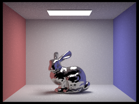 You can see in the pictures below that importance sampling converges far faster than cosine hemisphere sampling. Overall noise, particularly on the bunny, is much lower despite using the same number of samples.